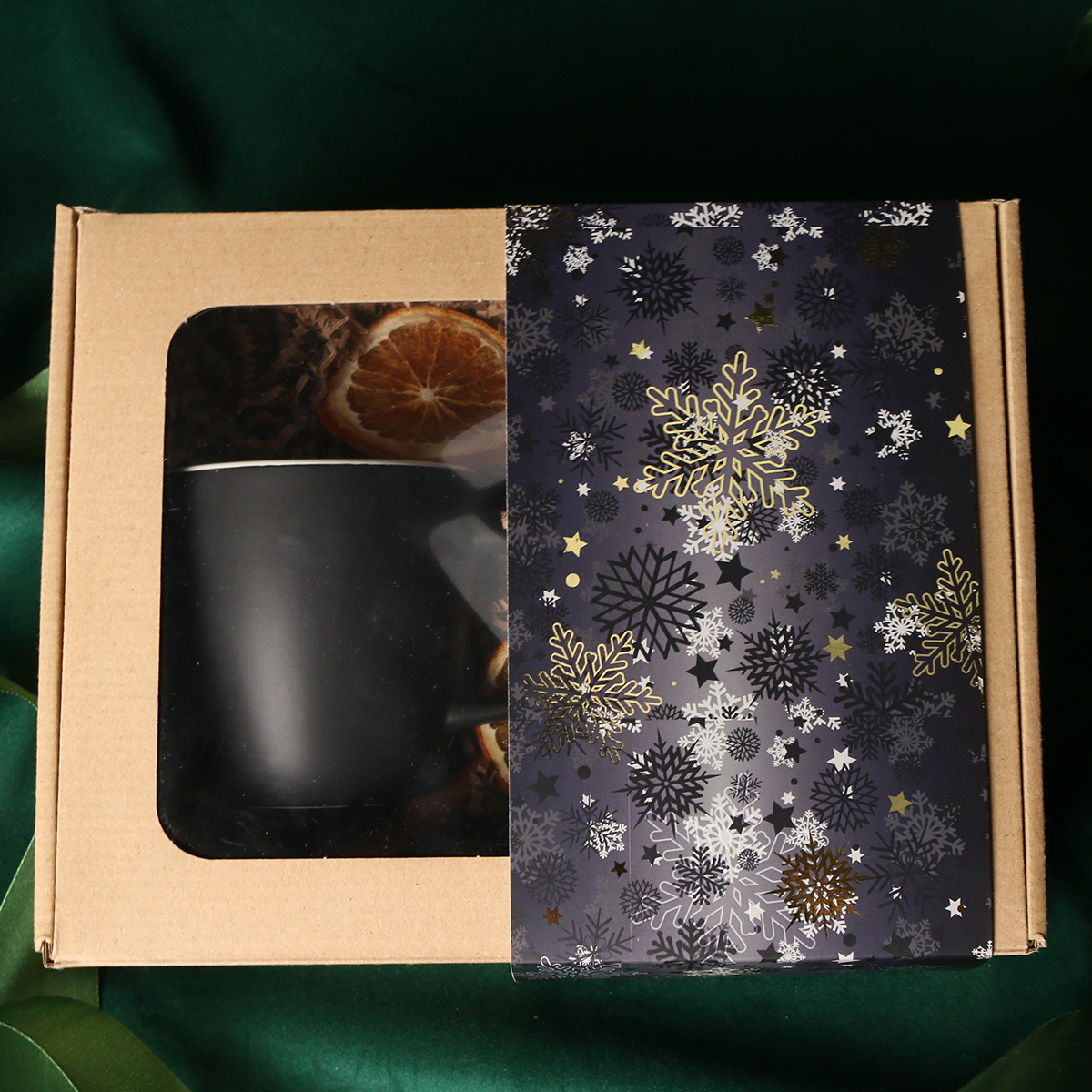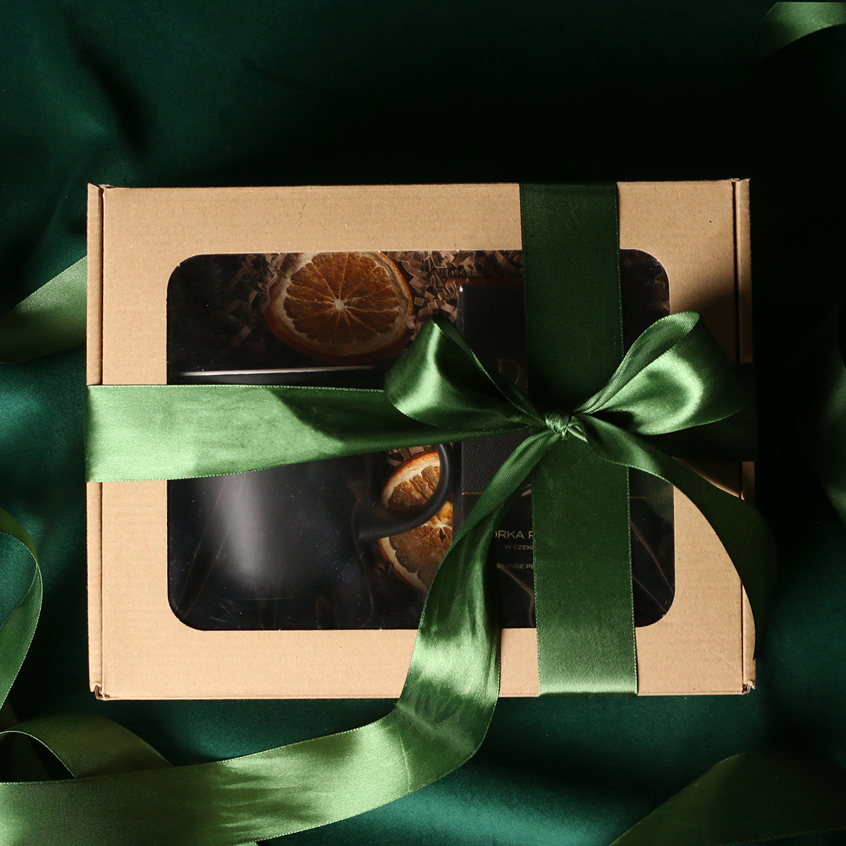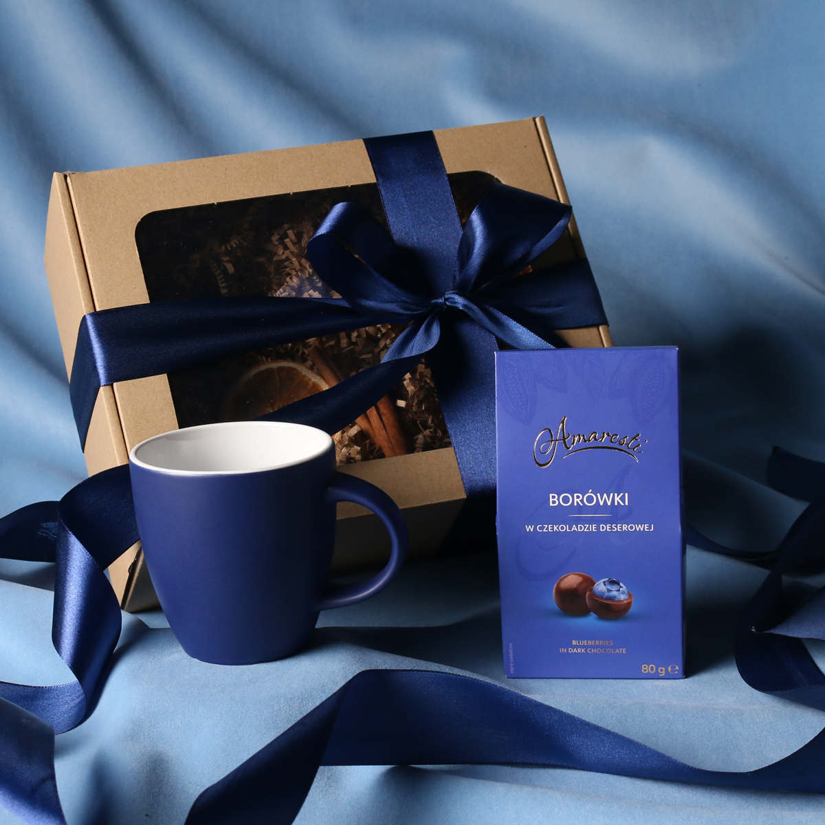 W skład zestawu wchodzą: kubek Fiord czerwono-biały / granatowy-biały / czarny-biały z możliwością zdobienia, Divine Pralines - żurawina w czekoladzie (czerwony) / borówki w czekoladzie (granatowy) / skórka pomarańczy w czekoladzie (czarny) Całość w stylowym opakowaniu z tektury eco z okienkiem. Opcje dodatkowej customizacji: nadruk na kubku, bilecik z logo firmy, wstążka lub obwoluta z motywem zimowym wzbogacona złoceniem
