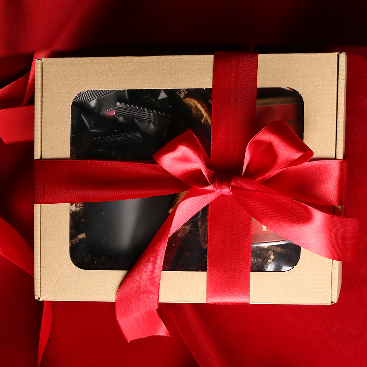 W skład zestawu wchodzą: kubek Barrel Supreme czarno-czwrwony / czarny-reflex blue / czarny-czarny z możliwością zdobienia, zielona herbata Sencha z wiśniami, płatkami róży zapakowana w tubę z motywem zimowym, 8 stuk czekoladek - mix smaków. Całość w stylowym opakowaniu z tektury eco z okienkiem. Opcje dodatkowej customizacji: nadruk na kubku, bilecik z logo firmy, wstążka lub obwoluta z motywem zimowym wzbogacona złoceniem.