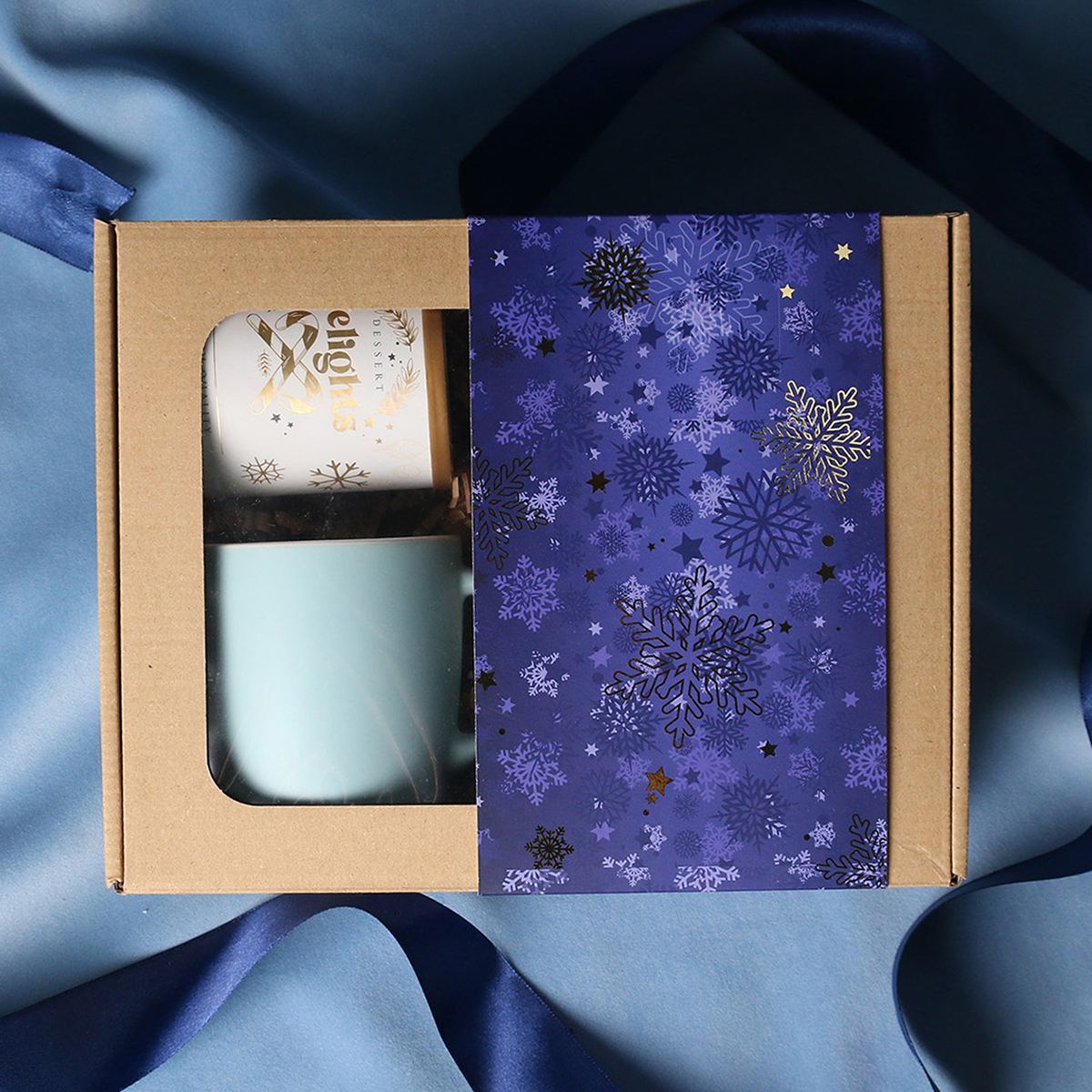W skład zestawu wchodzą: kubek Handy Velvet rose pink-biały / baby blue-biały / Handy Cool szary-biały z możliwością zdobienia, Divine Pralines - migdały w czekoladzie z malinowym pudrem (różowy) / migdały w czekoladzie z kokosem (niebieski), skórka pomarańczy w czekoladzie deserowej (szary) Dessert Delights - Czarna porzeczka w białej czekoladzie z pudrem malinowym zapakowana w tubę z motywem zimowym. Całość w stylowym opakowaniu z tektury eco z okienkiem. Opcje dodatkowej customizacji: nadruk na kubku, bilecik z logo firmy, wstążka lub obwoluta z motywem zimowym wzbogacona złoceniem.